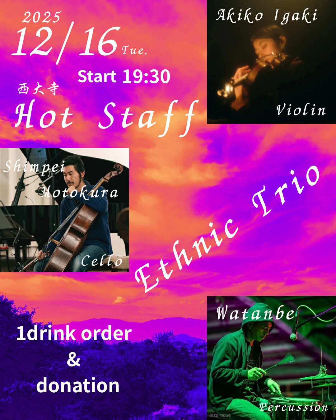 本倉信平(Cello)ワタンベ(Drums)イガキアキコ(Violin)